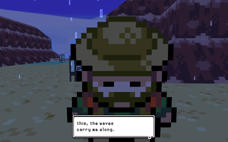 I am sure this words or saying should be said by swimmer, because I remember this words from one ruby version's female swimmer. He is standing on the way to mahogany town.